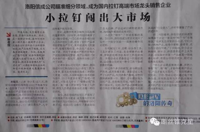 2015年7月24號,名聲在外的信成迎來了《洛陽日報》的來訪,總經(jīng)理丁向陽接受了記者的專訪,登上洛陽日報專題報道: