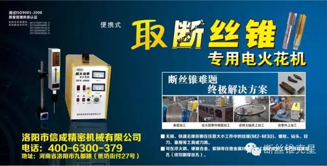 HHJ系列、YT系列“取斷絲錐電火花機”,體積小重量輕,可方便去除折斷在任意大小工件中的斷絲錐、斷鉆頭等,尤其適用于在電火花機床上加工的大型 工件。超大功率電火花機SFX-4000,在技術(shù)上實現(xiàn)了重大突破,加工范圍及效率大幅提高,可以取M2-M50的斷絲錐,斷螺絲,斷鉆頭,斷鉸刀等!