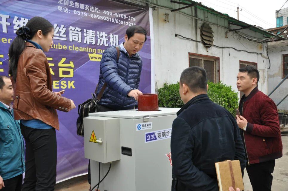 3月15日上午,九江華雄玻纖王總、振華玻纖張總、愛民玻纖顧總一行3人蒞臨洛陽信成精密機械有限公司,考察玻纖繞絲筒清洗機。信成公司總經(jīng)理丁向陽、副總經(jīng)理??〗?、總工藝師林衛(wèi)等陪同客戶在洗筒機零部件的生產(chǎn)車間和組裝車間進行了參觀并進行了講解。三位老總認真的聽取了公司負責人的介紹,并就感興趣的問題不時的進行詢問。當他們了解到,公司洗筒機零部件都進行了激光打標以及公司產(chǎn)品出口到美歐等20余個發(fā)達國家時,直呼信成的產(chǎn)品精致制造,讓人放心!他們表示,返廠后將進行采購!洛陽信成,值得信賴的合作伙伴!
