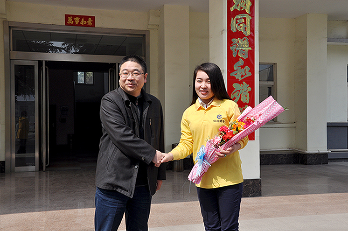 3月21日下午,總經(jīng)理丁向陽帶領(lǐng)銷售財務(wù)部及辦公室全體在崗人員,帶著鮮花在辦公樓前熱情迎候載譽歸來的信成戰(zhàn)士。在隊長黃利利的帶領(lǐng)下,劉向前、侯小紅、牛海波笑容滿面地走下公司的奔馳汽車,向迎接他們的公司領(lǐng)導(dǎo)和同事熱情握手致意。