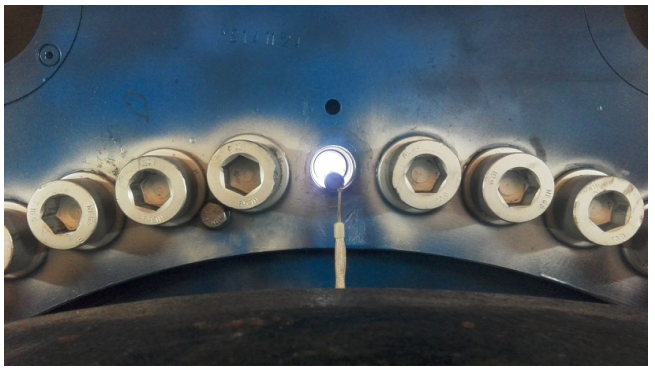這種螺栓曾經(jīng)在云南昆明、河南宜陽取風電斷螺栓時遇到過,不過,這次的運氣可沒以前的好。因為這臺風機軸承蓋太大,位置不夠,攜帶的工具施展的空間較小,難度特別大;在施工過程中,自制刀桿又被設(shè)備卡住,給工作帶來巨大的不確定性。面對困難,劉向前平心靜氣,每一步的施工變得更加認真,不斷的研究施工方案,并實時將現(xiàn)場信息傳回洛陽。