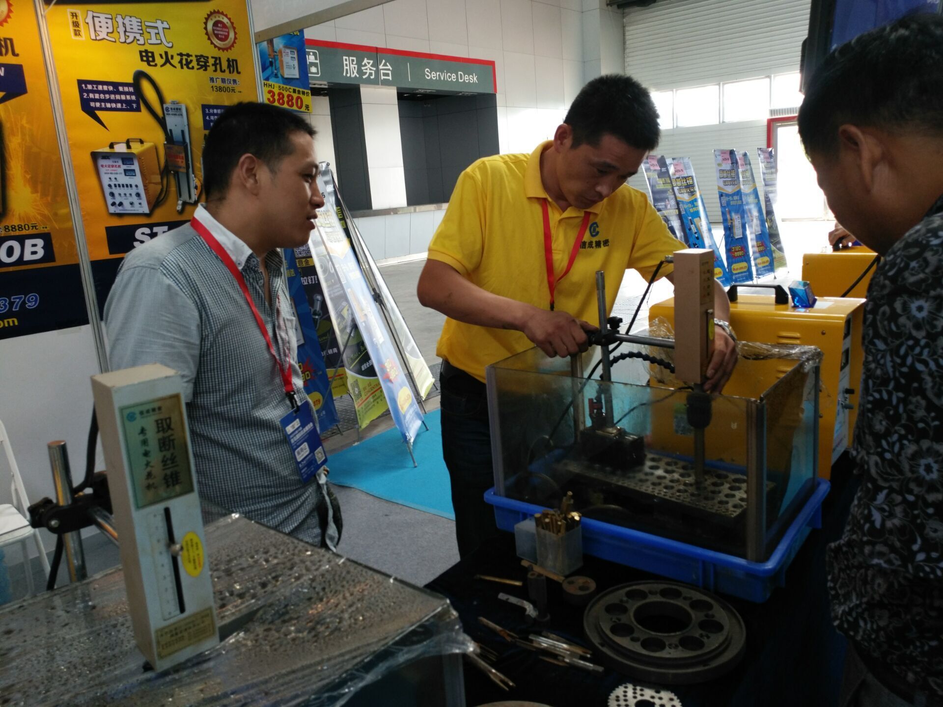 客戶帶工件到展位 現(xiàn)場(chǎng)演示取絲錐