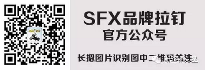 掃碼關(guān)注SFX品牌拉釘訂閱號、斷絲錐克星服務(wù)號,并把此信息轉(zhuǎn)發(fā)到朋友圈,可到S4-C75-76展位***取價值35元SFX品牌拉釘壹支。