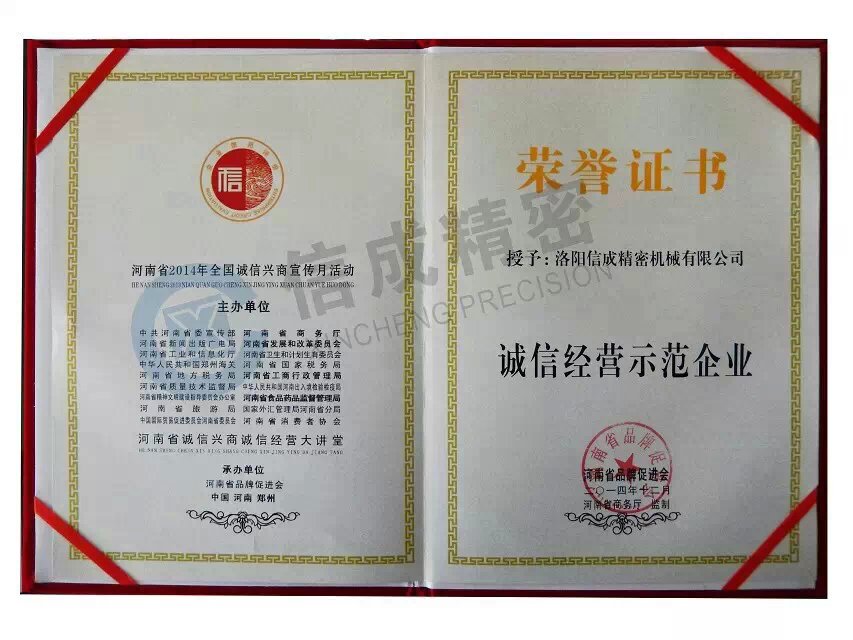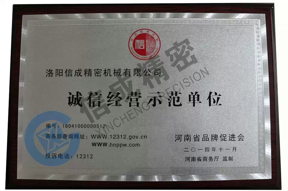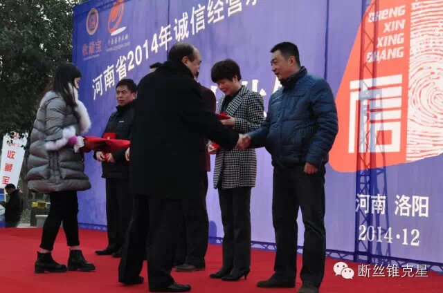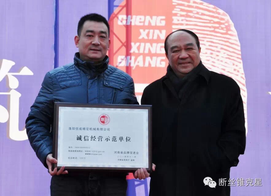 洛陽信成獲【誠(chéng)信經(jīng)營(yíng)示范單位】稱號(hào)