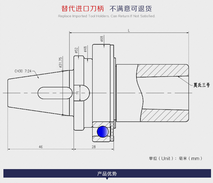 巨浪莫氏3號(hào)刀柄CH30-MTA3刀柄周邊工具