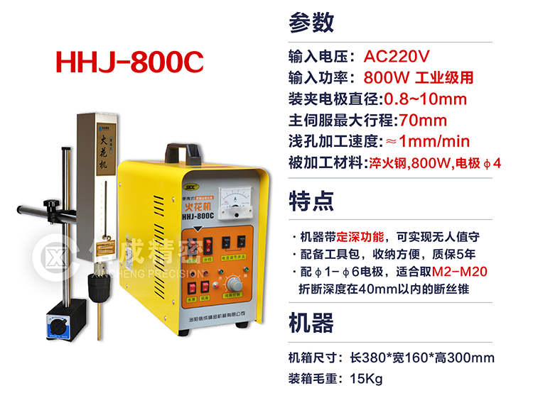 - 簡(jiǎn)介:HHJ-800C便捷式火花機(jī)功率800W,可設(shè)定深度,盲孔取絲錐時(shí)不需人工看守,自動(dòng)返回并報(bào)警,而且有單獨(dú)的工具包方便收納。
