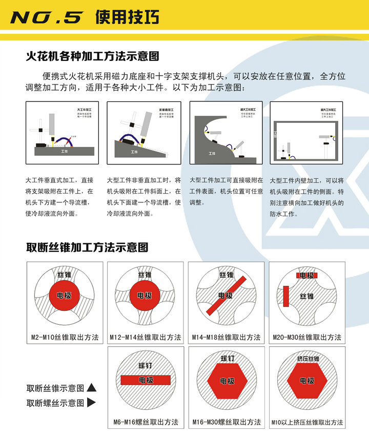 配M1-M6電極,適合取M2-M20,折斷深度在40mm以?xún)?nèi)的斷絲錐,特別是在取M10以上斷絲錐時(shí)效果明顯增快